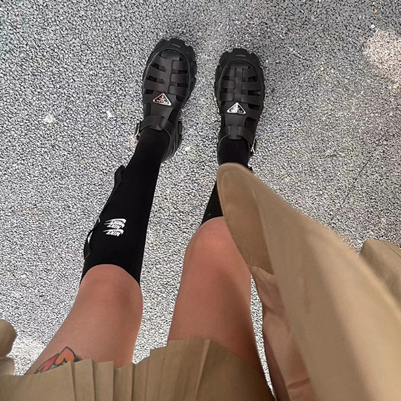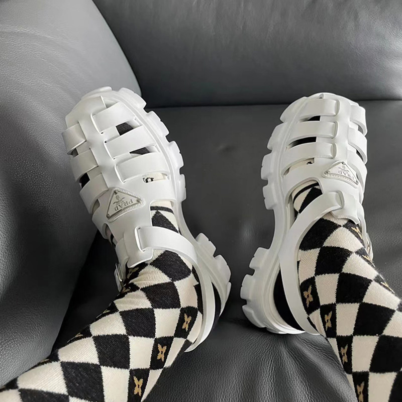 Woman Fashion Cool Shoes Thick Sole Heightening Coarse Heel Sandals Style Hollowed-out Holes Shoes Pine Pastry Base Roman Sandals