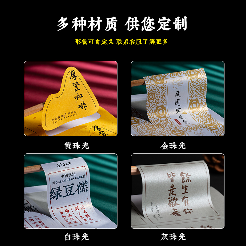 Pearlescent adhesive sticker custom two-dimensional code sticker logo sticker set for tea label QC label takeaway