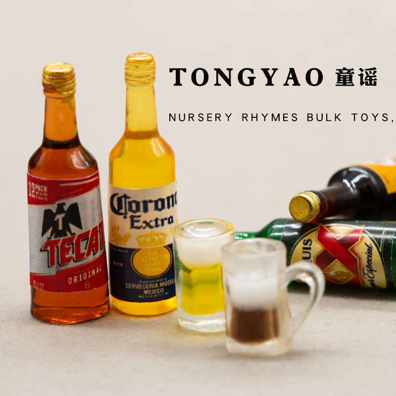 Simulation mini food play beer cup wine bottle toy model shooting props play home wine doll house accessories diy