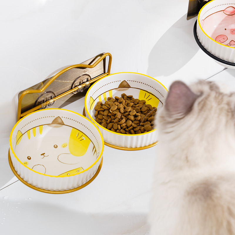 Cat bowl double bowl ceramic protection cervical vertebrae dog food bowl hanging height-enhancing rack anti-overturning cat and dog water bowl easy to clean