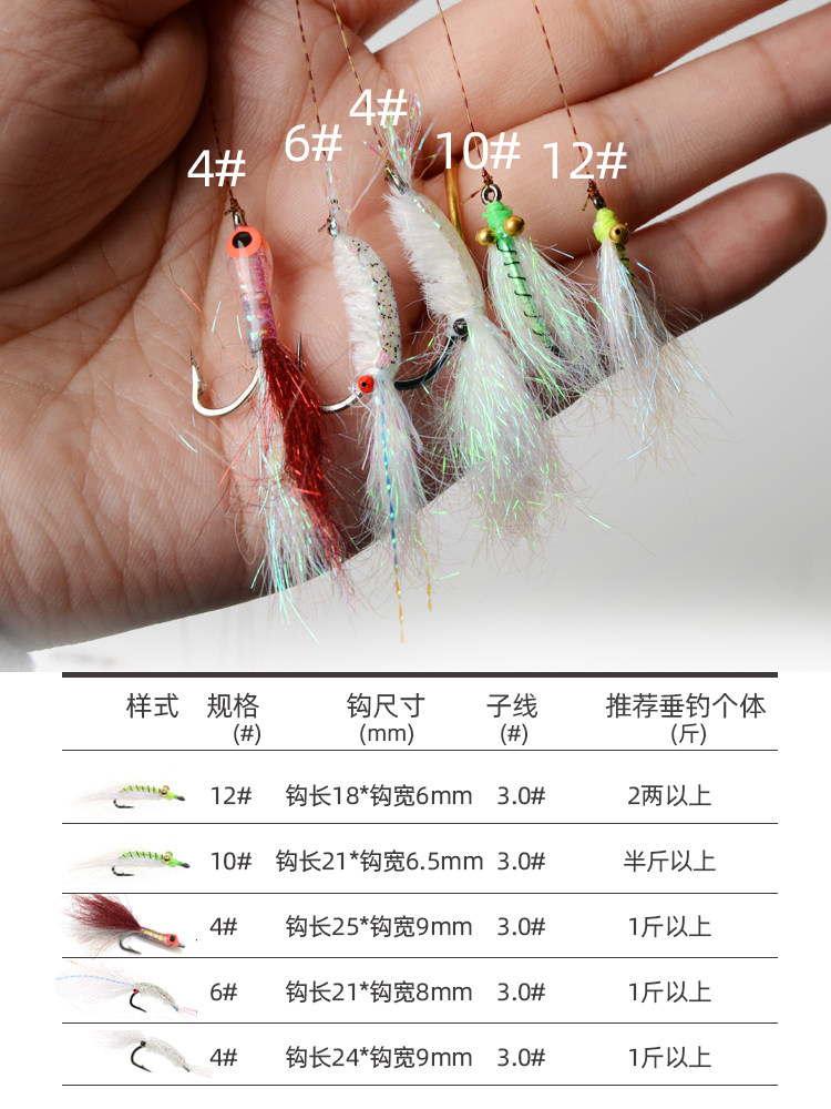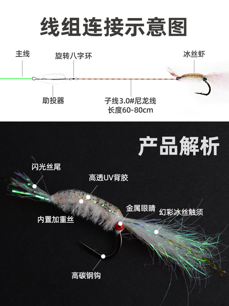 Ice Silk Shrimp Fishing Group Luminous Fly Fly Hook Tied up Luther Bait False Bait Booster Suit White Bar Horse Mouth Teething Line Group
