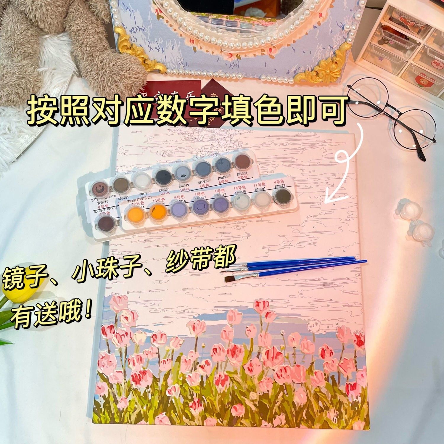 DIY Oil Painting Mirror Handmade Digital Oil Painting Mirror Irregular Makeup Mirror Submaterial Bag Makeup Mirror Creative