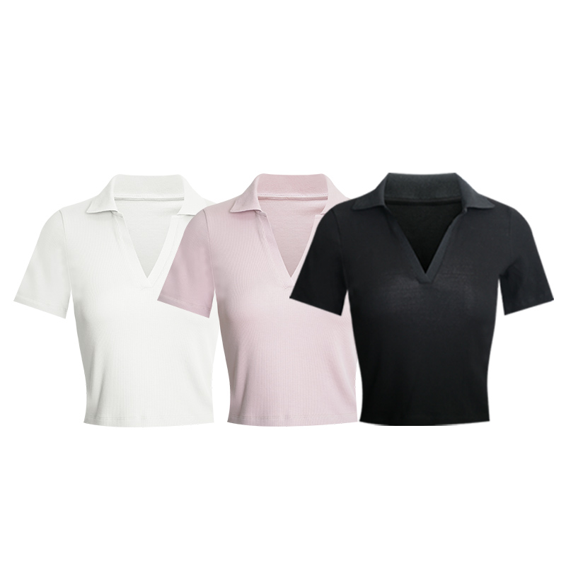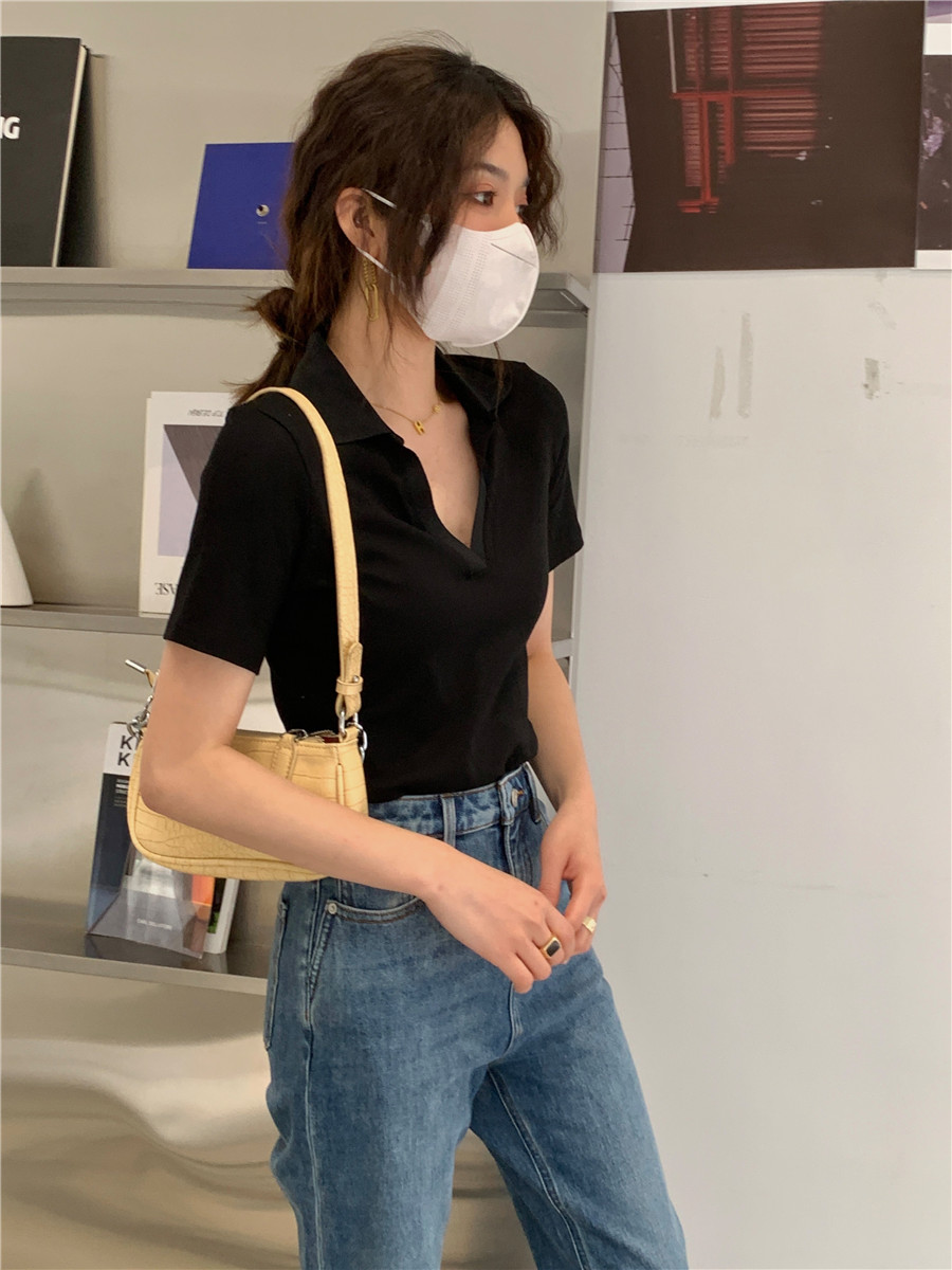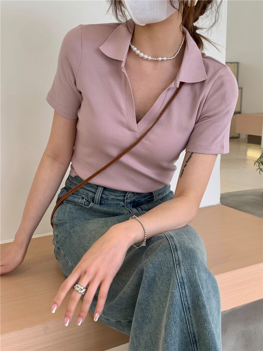 Little Pull 1937 Press Head Amway! Super slim V-neck pink white black tri-color cotton T-shirt versatile short-sleeved shirt