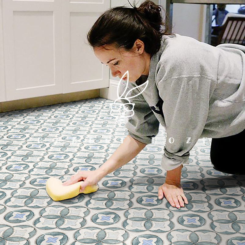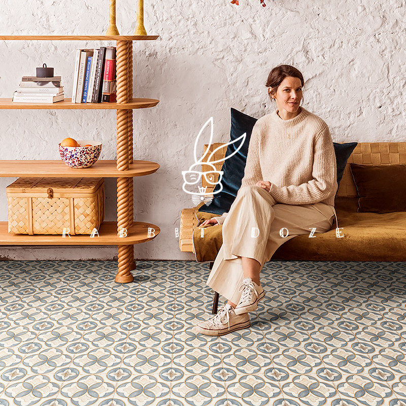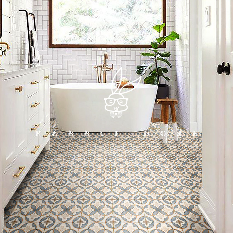 French retro blue green small flower brick micro-cement wall brick kitchen bathroom background wall balcony floor tile 200