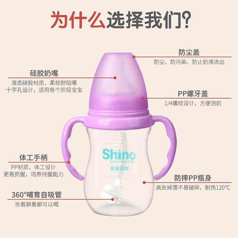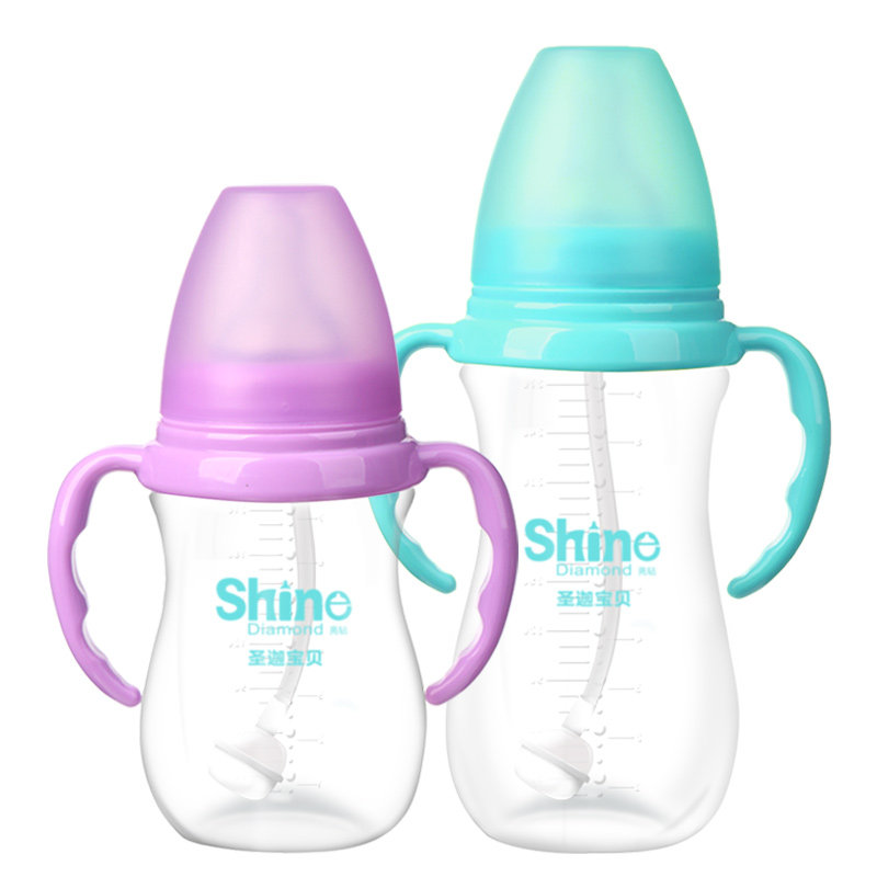 Wide-calibre baby anti-fall PP bottle large capacity explosion proof with handle straw anti-flatulsion air-proof milk bottle
