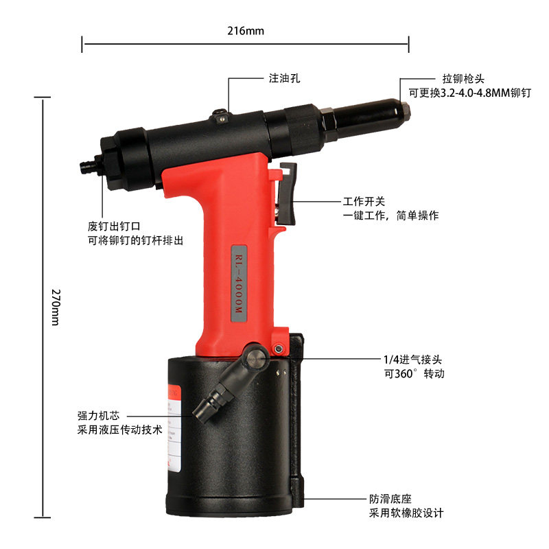 Rogo Pneumatic Rivet Gun Hydraulic Stainless Steel Pulling Rivet Gun 3 2-4 8mm Industrial RL-4000M Old Model