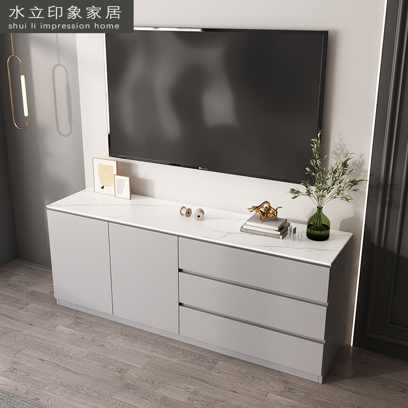 Modern minimalist bedroom slate TV cabinet light luxury solid wood sideboard living room porch multifunctional storage can be customized