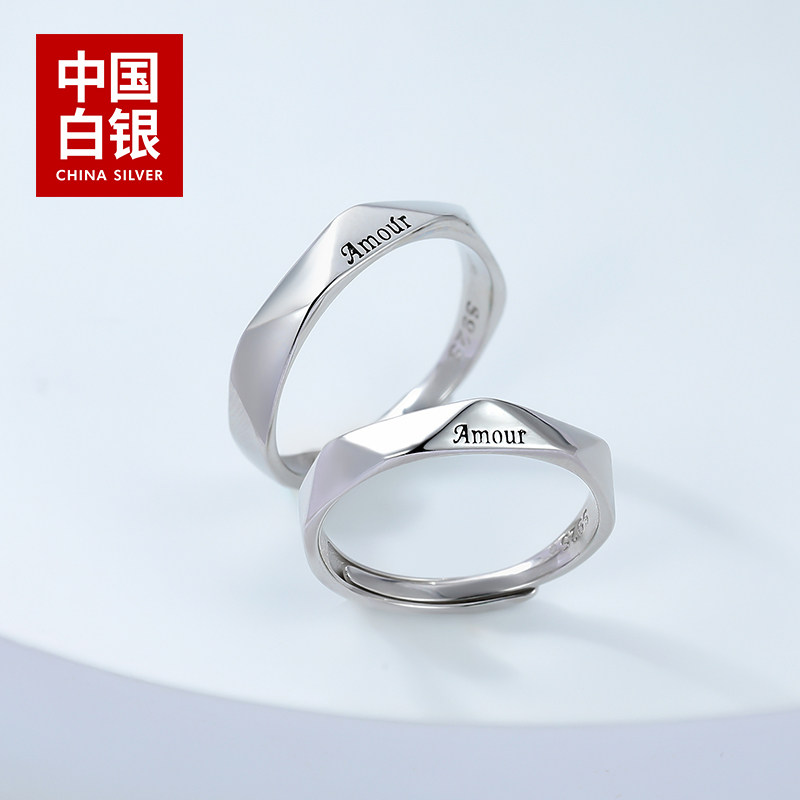 Chinese silver couple ring pure silver a pair of light luxury niche design for girlfriend and girlfriend's birthday present