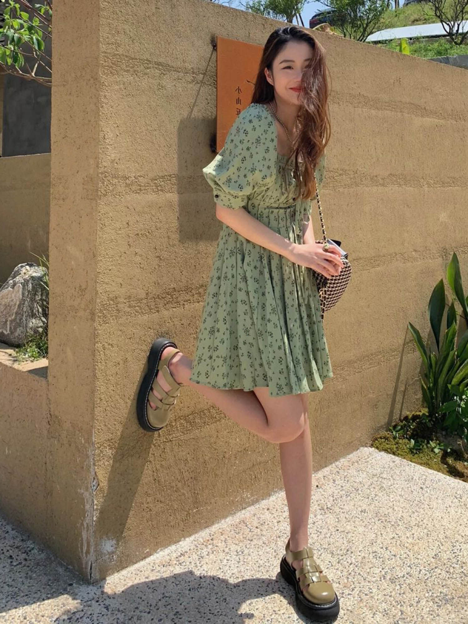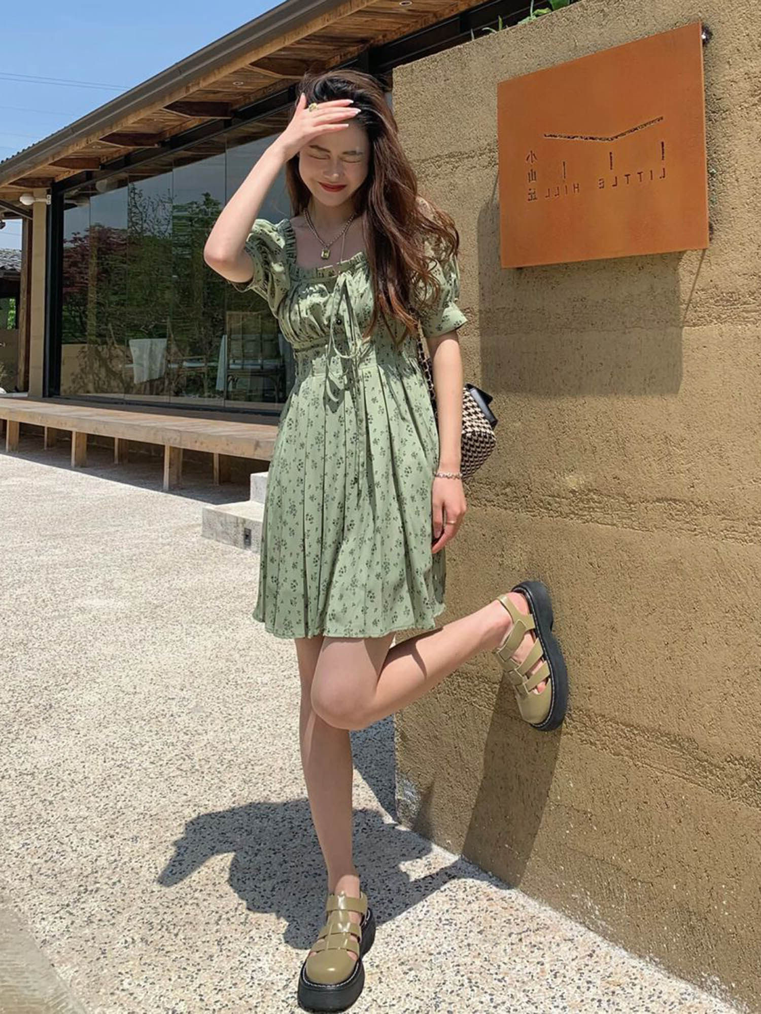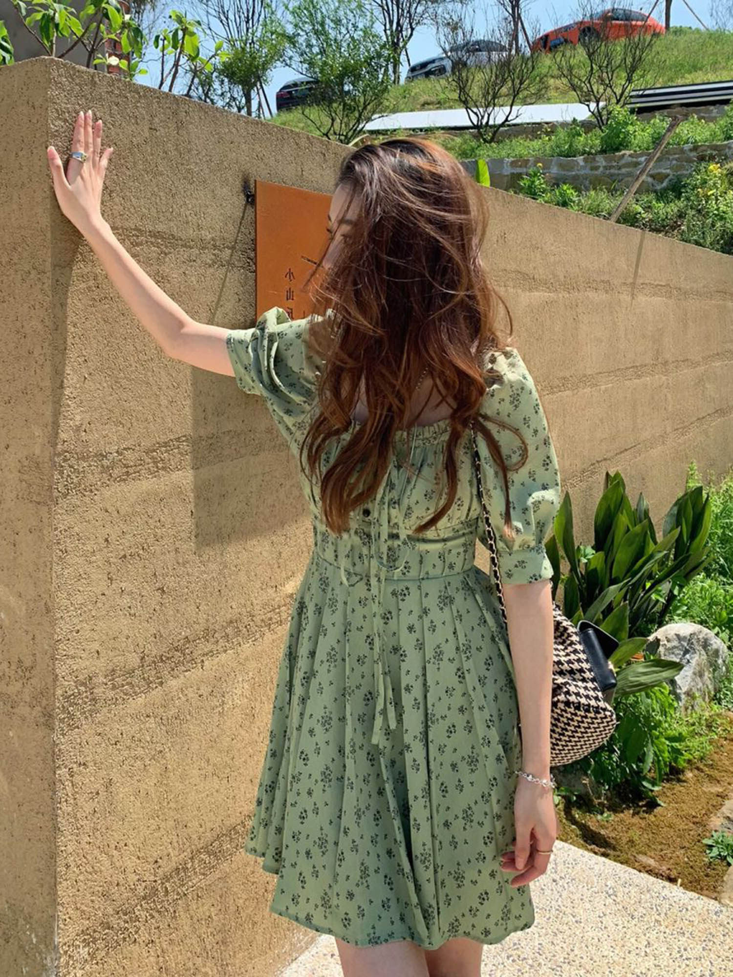 2022 Summer new French style square collar High waist small sub tea Broken Flowers Foreign Dress Women Casual Temperament Skirt