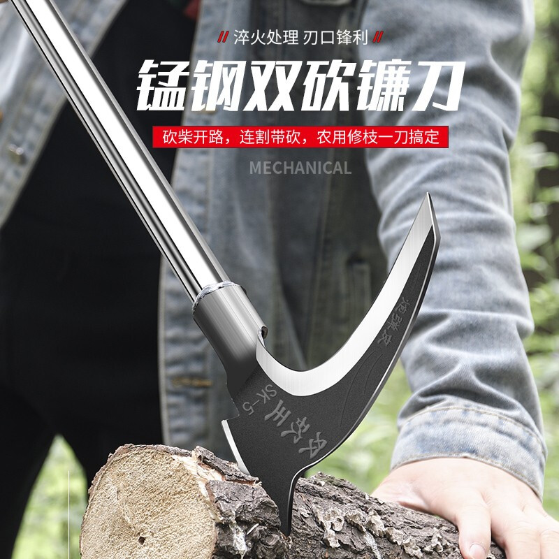 German import double chop sickle agricultural mowing straw knife long handle chopping wood knife cut tree knife outdoor machete knife cut wood deity