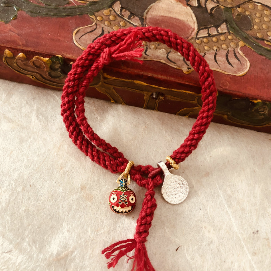Handwoven Tibetan cotton thread hand rope hand refiners pure silver duozodiac 9 Palace gossip hands rope swallowing beasts