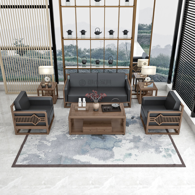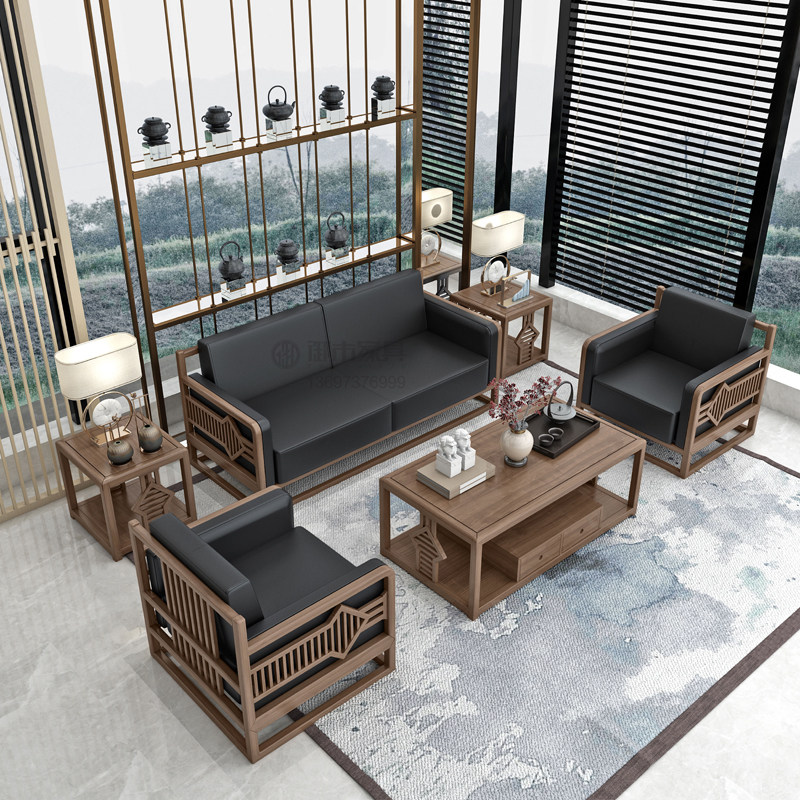 New Chinese style solid wood sofa coffee table combination boss office business reception sofa simple modern living room sofa
