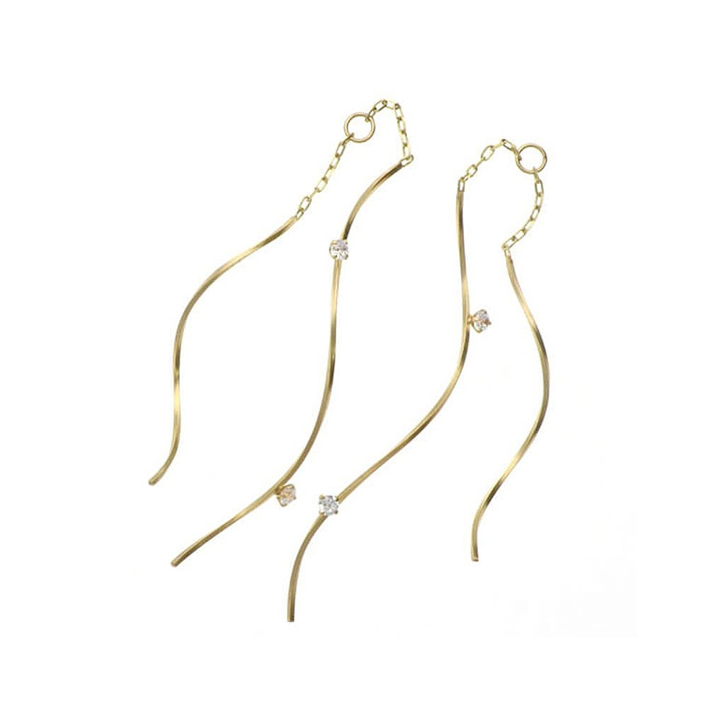 Japan Direct Mail Wisp Ear Nail Lady 10K Gold Zircon flow Suearline trendy 100 hitch a casual gem niche-Taobao