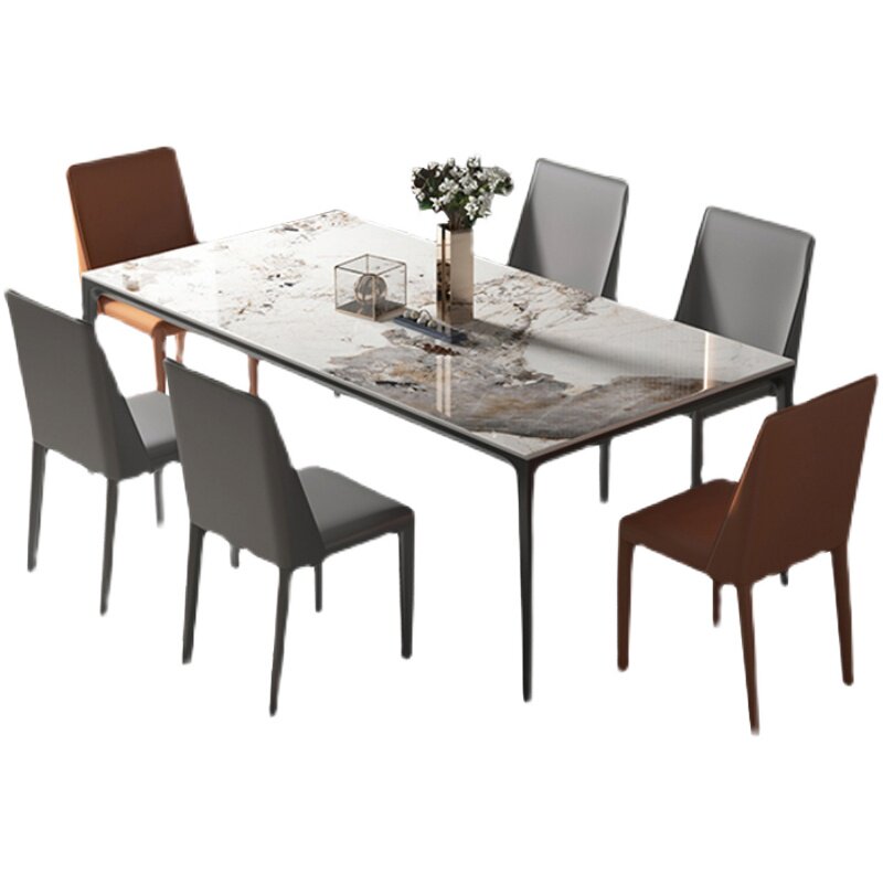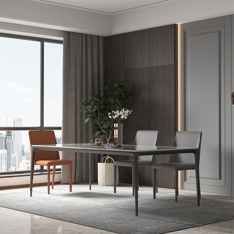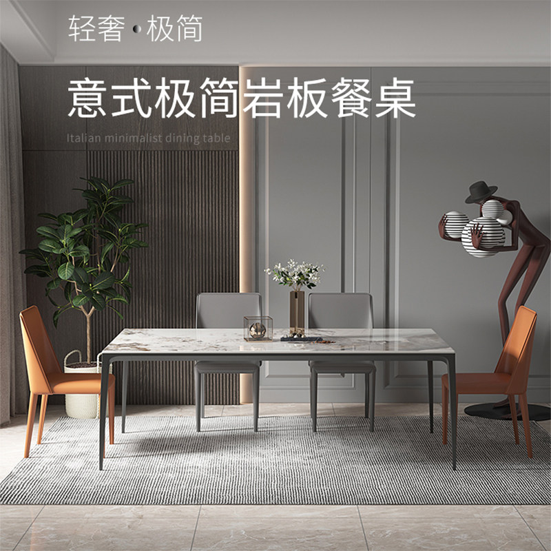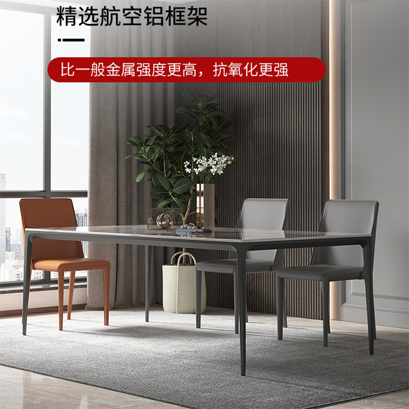 Italian style rock plate dining table and chair combination modern minimalist minimalist rectangular dining table aluminum alloy household small-sized dining table