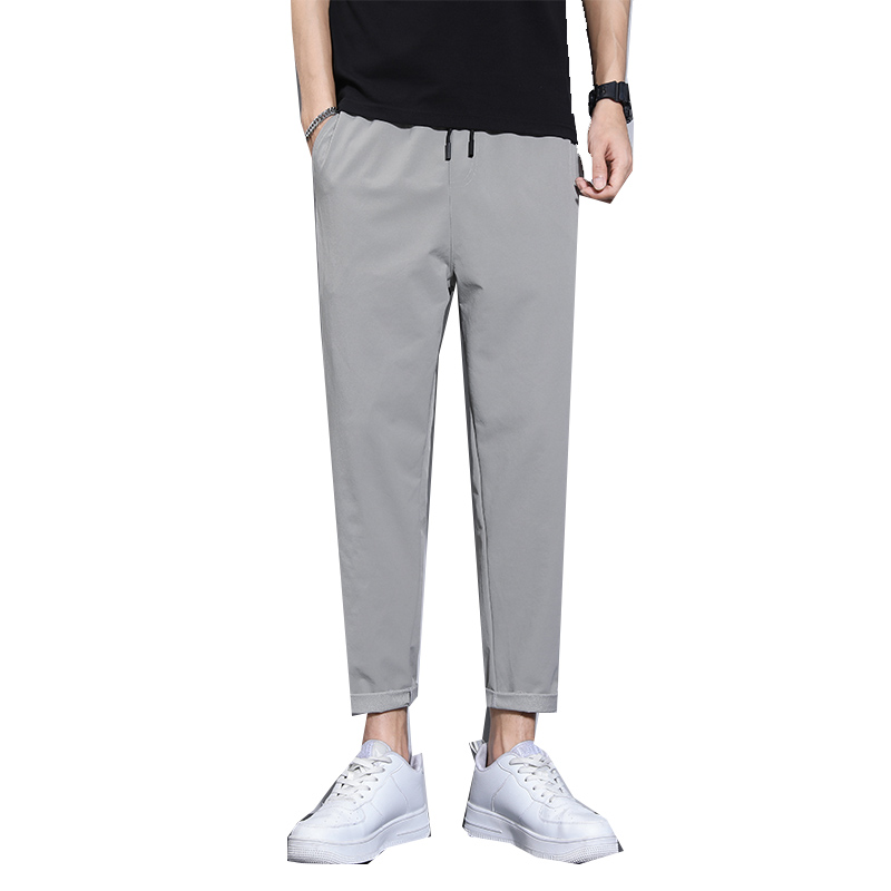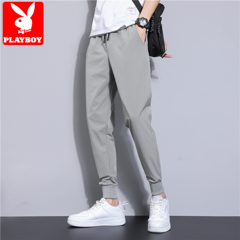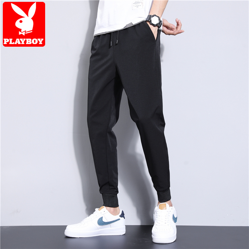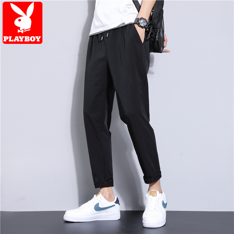 Playboy ice silk casual pants men's summer thin section trend large size loose straight cool nine-point trousers
