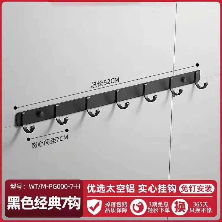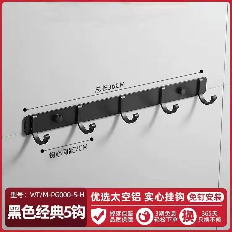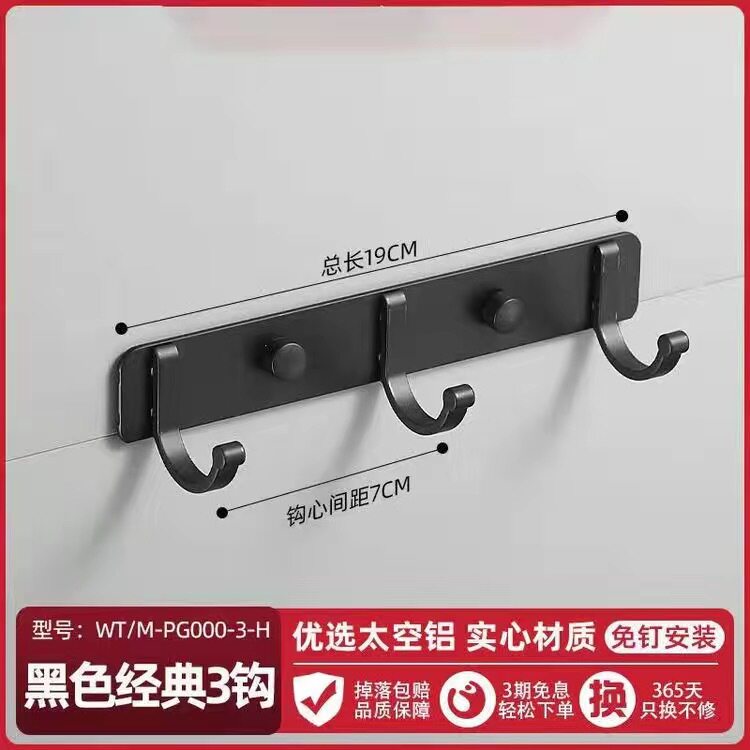 Free Punch Space Aluminum Black Baking Varnish Thickened Row Hook Hook Makeup Room Toilet Wall-mounted Door Rear Solid Clothes Hook