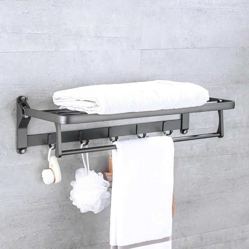 Gun Grey Makeup Room Hair Towel Rack Free Of Punch Bathroom Shelve Wall-mounted Bath Towel Rack Bathroom Hardware Pendant Suit