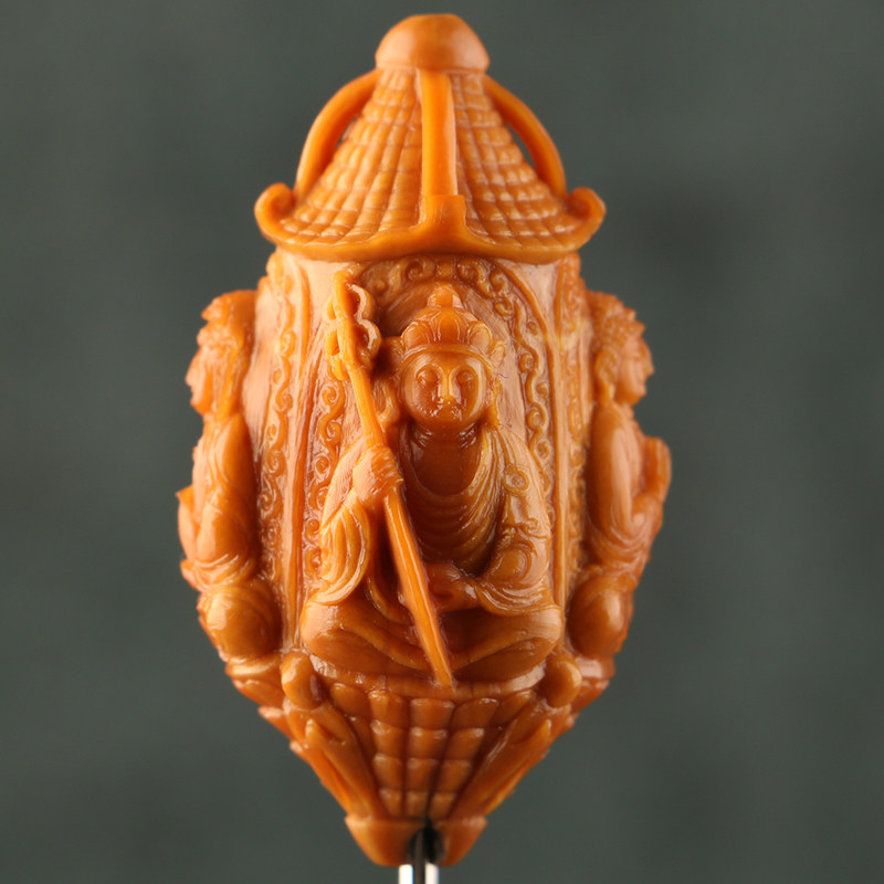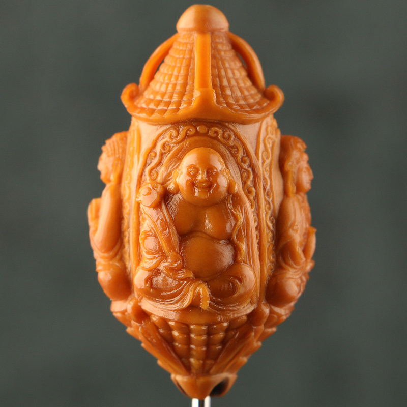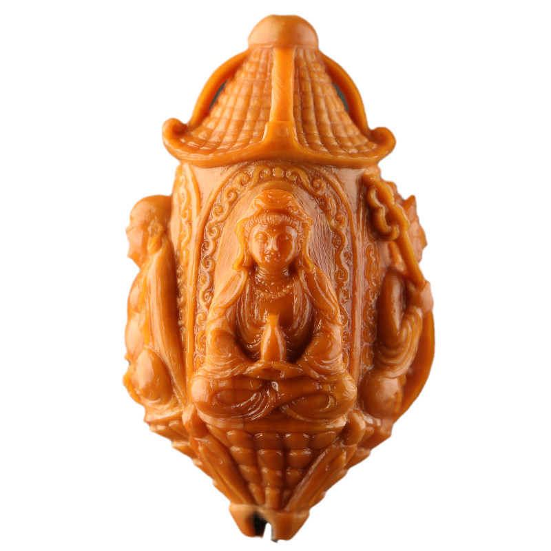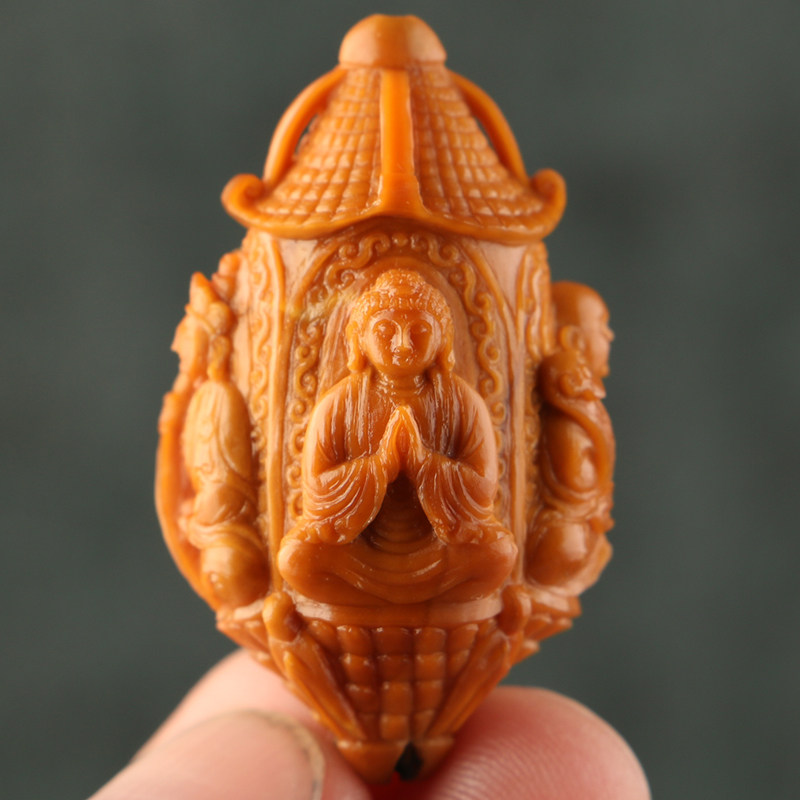 2 4x4 1cm (on four sides Buddha) Liu Xiaoqin works olives nuclear sculpted triflower oil nuclear single seed pendant