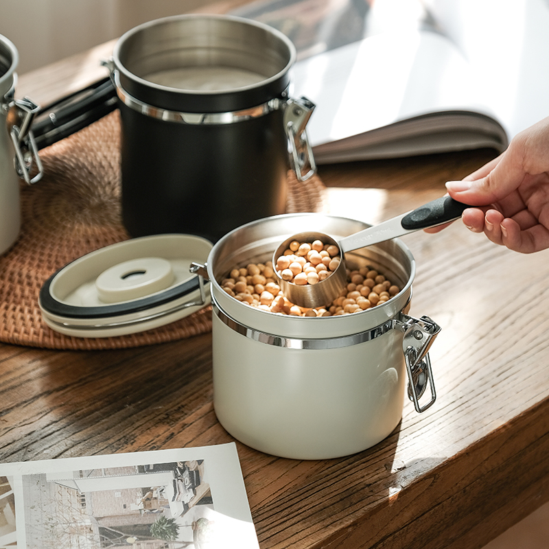 Stainless Steel Sealed Jar - 1.2L Black (with Steel Spoon) Stainless Steel Sealed Tank - 1.2L Beige (with Steel Spoon) Stainless Steel Sealed Tank - 1.5L Black (with Steel Spoon) Stainless Steel Sealed Tank - 1.8L Black (with Steel Spoon) Stainless Steel Sealed Tank - 1.8L Beige (with Steel Spoon)