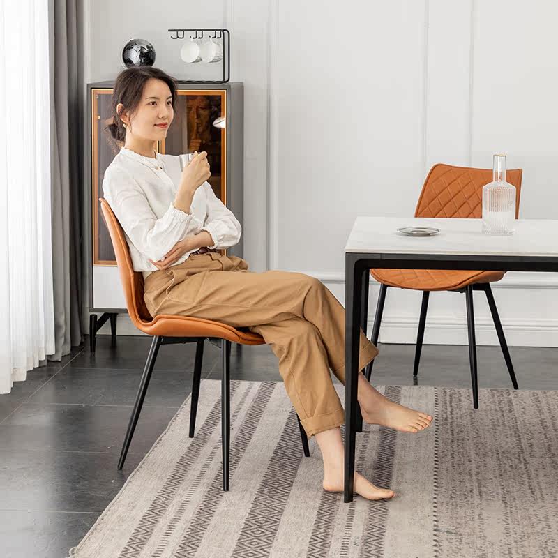Dining Chair Home Light Luxury Dining Room Chair Leather Chair Nordic Simple Modern Dining Table Chair Back Chair Iron Art Leisure Comfort Chair