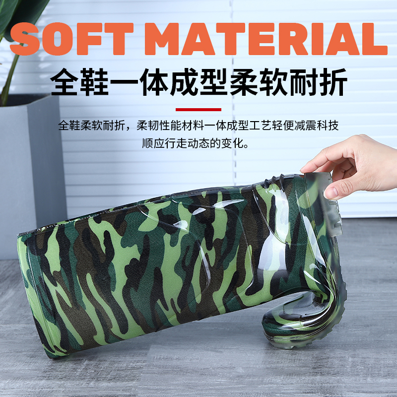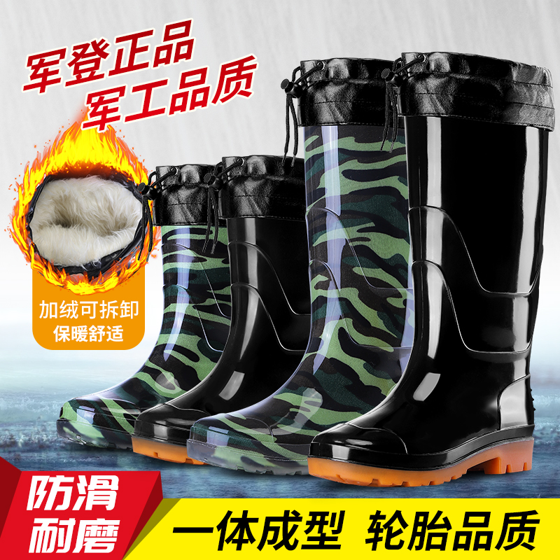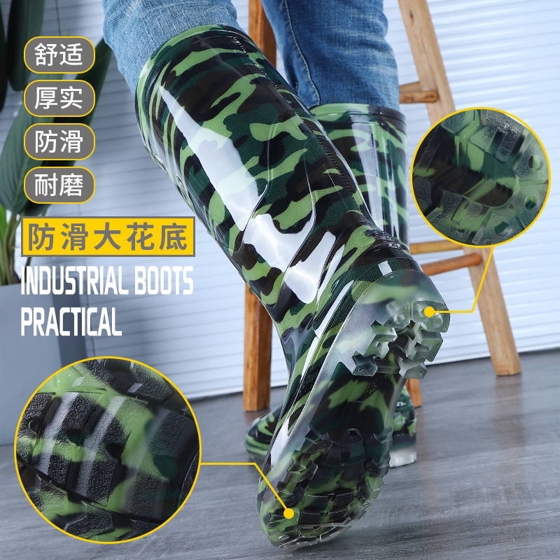 Military Den Bull Gluten Bottom Camouflage Rain Shoes Male High Cylinder Anti-Slip Midcylinder Thickened Suede Rubber Shoes Car Wash Site Lao Water Shoes Man-Taobao