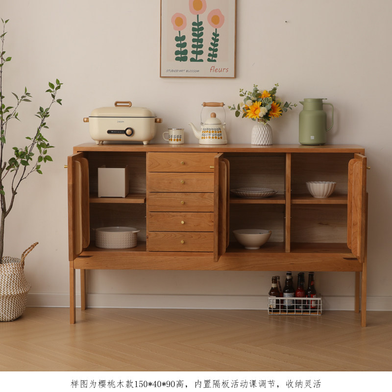 Nordic minimalist modern solid wood cherry wood dining cabinet Japanese white oak cupboard living room home storage cabinet