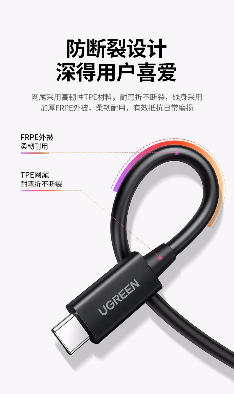 Green Union double Type-C data line USB4 line compatible with thunder and thunder 3 hard disc PD100W quick to charge apple Huawei