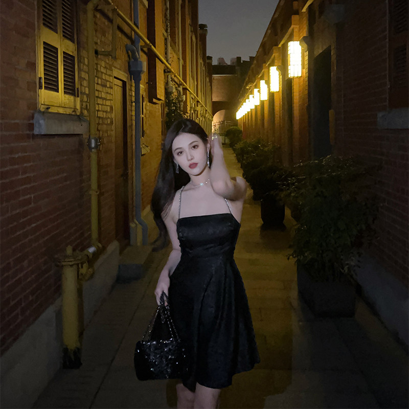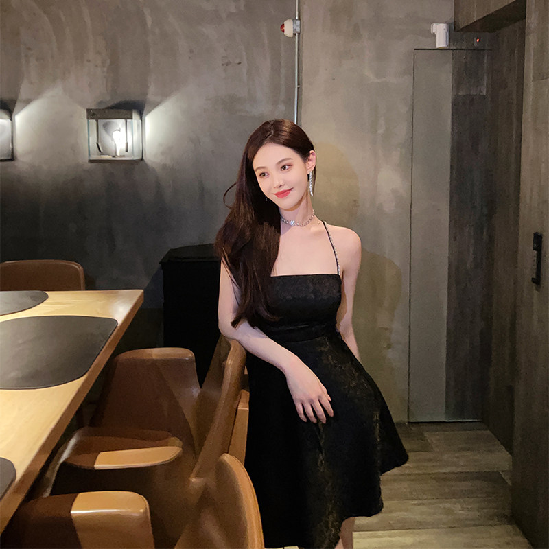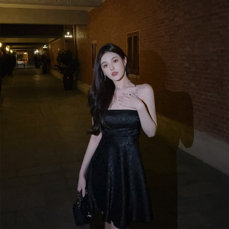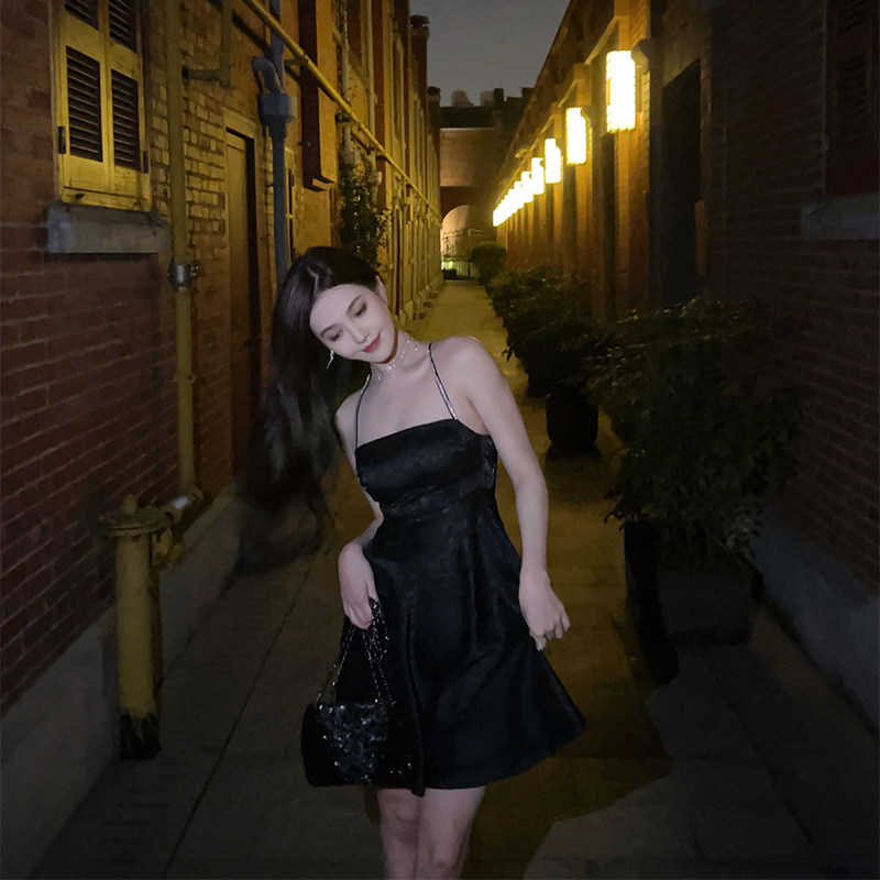 nicky high-end pure desire black suspender skirt 2022 summer with straps and backless design sleeveless and thin