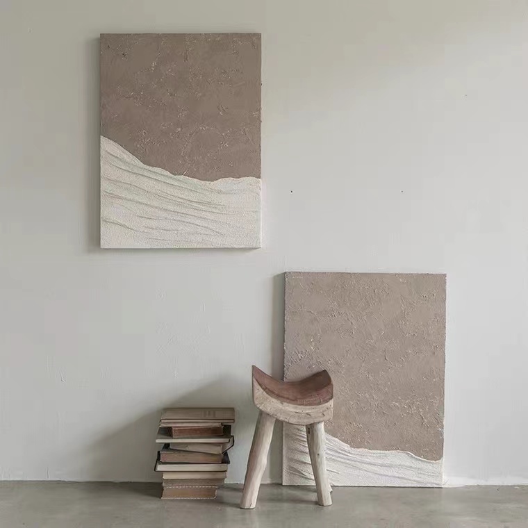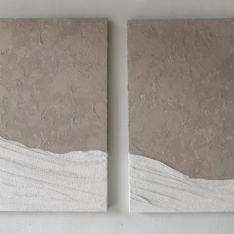Hand-painted oil painting art living room sofa diptych Japanese style wabi-sabi style modern minimalist abstract restaurant three-dimensional hanging painting - Taobao
