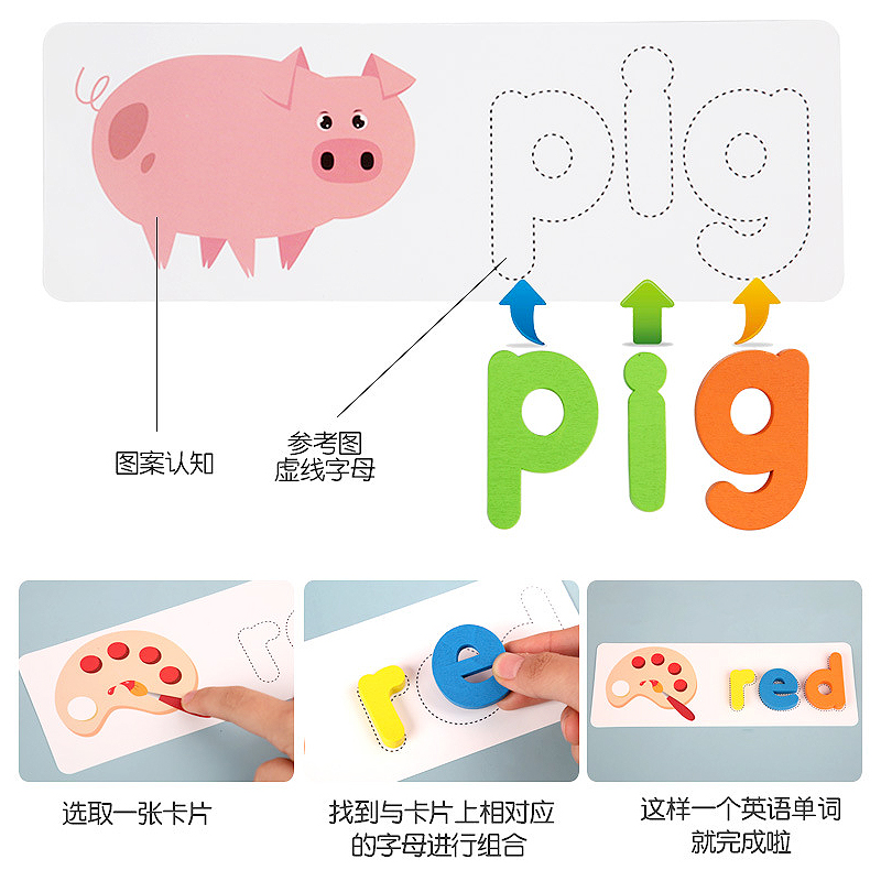 Montz English Word Spelling Puzzle is selling early childhood English Enlightenment Wood Toys Children's Letters Cognition