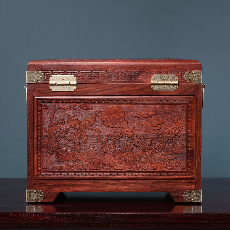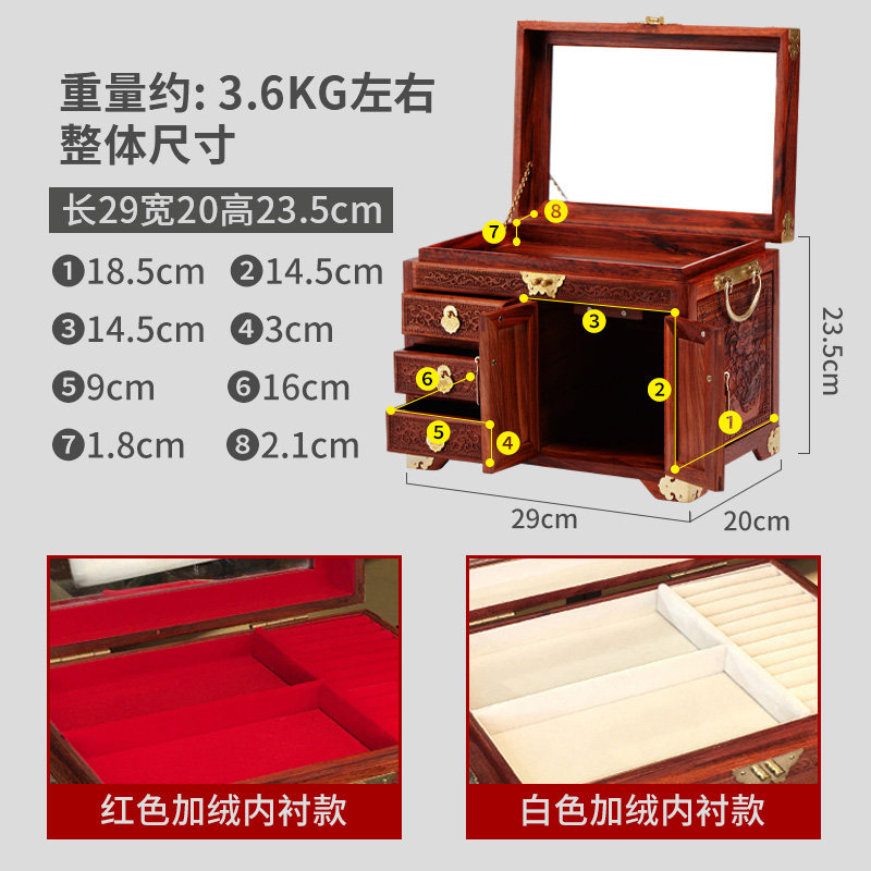 Blood sandalwood Ancient Wind Solid Wood First Decorated Case Swing Piece Chinese Imitation Antique Mirror Case Tenon-and-Contained Jewelry Box Wedding Escort Gift-Taobao