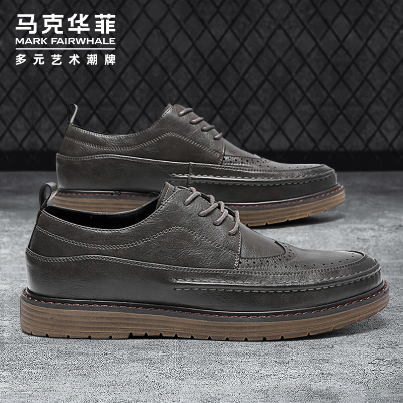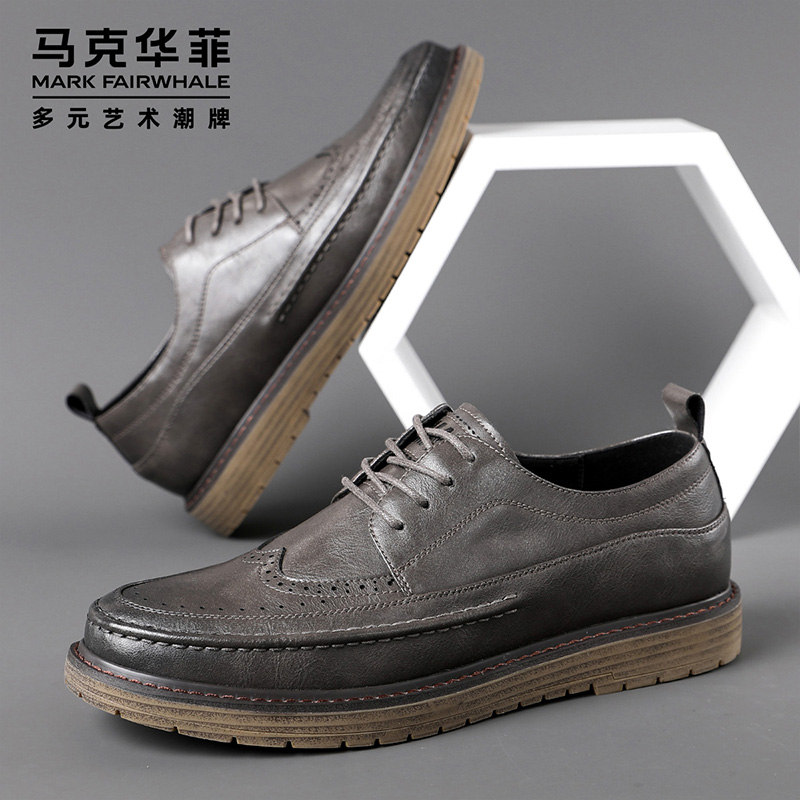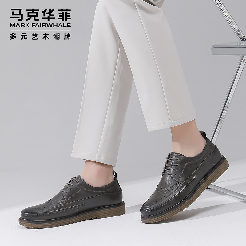 Mark Huafei British shoes men's brogue leather shoes men's gray summer breathable casual shoes genuine leather work business