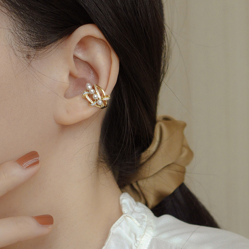 Circle circle niche high-end ear bone clip without ear piercing female ear clip unique light luxury clip ear bone French retro pearl