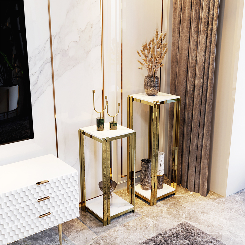 U Home -- light and luxurious slab flower shelf Stainless Steel Living Room Interior Decoration Pendulum floor Balcony Flower Pot shelf-Taobao