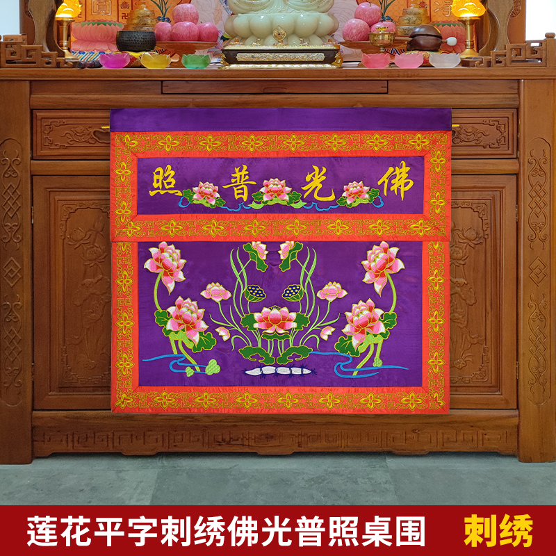 Customizable embroidered Buddha Tong satin Buddha tableclob home for table Buffon photo lotus table circumference