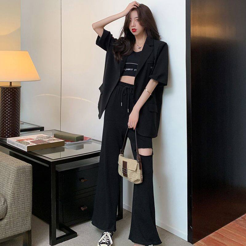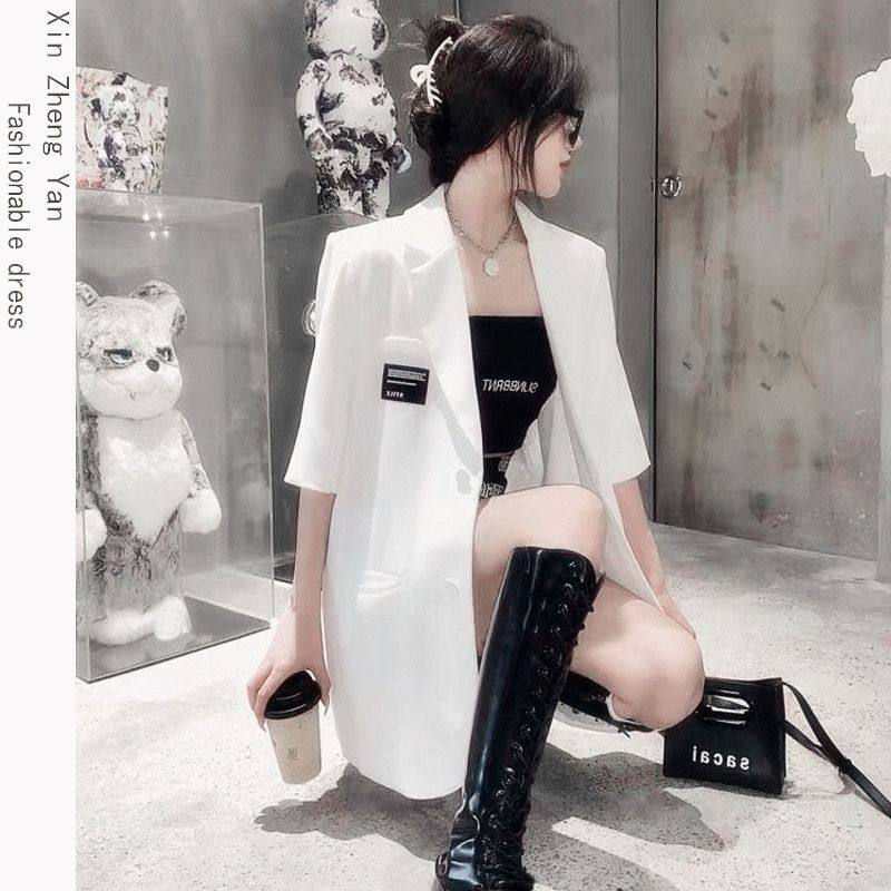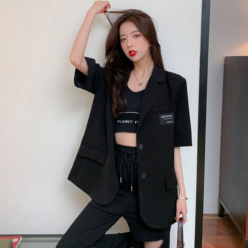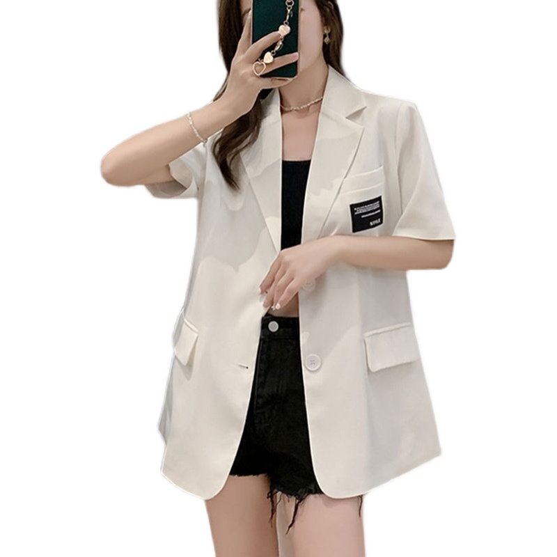 2022 summer net celebrity short-sleeved small suit women's loose Korean version of the fashion college lazy style mid-length suit jacket