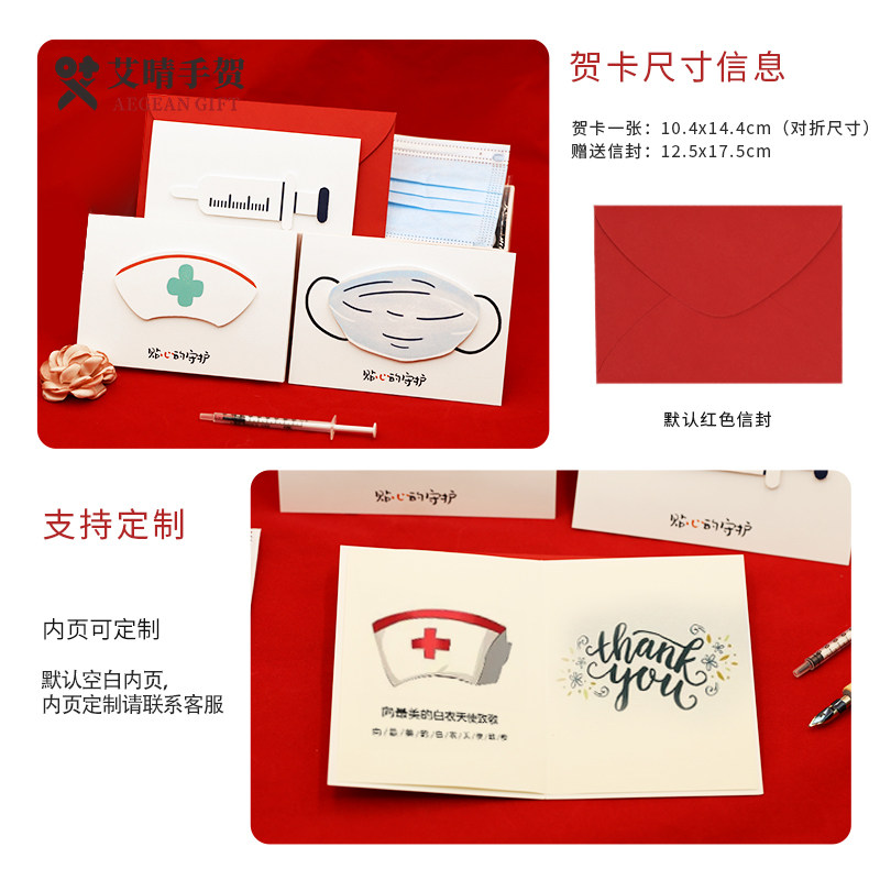 Health Blessing Card Business Customized Thanks to Doctor Nurse's Day Thanks for Anti-Epidemic Heroes Florist Making