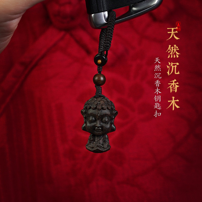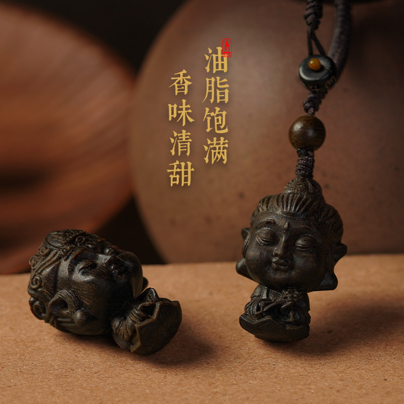The Dullness of the fragrant Moon is hidden without moving the King Bodhisattva hand to play a piece of text with a little Buddha pearl sandalwood pendant key button-Taobao