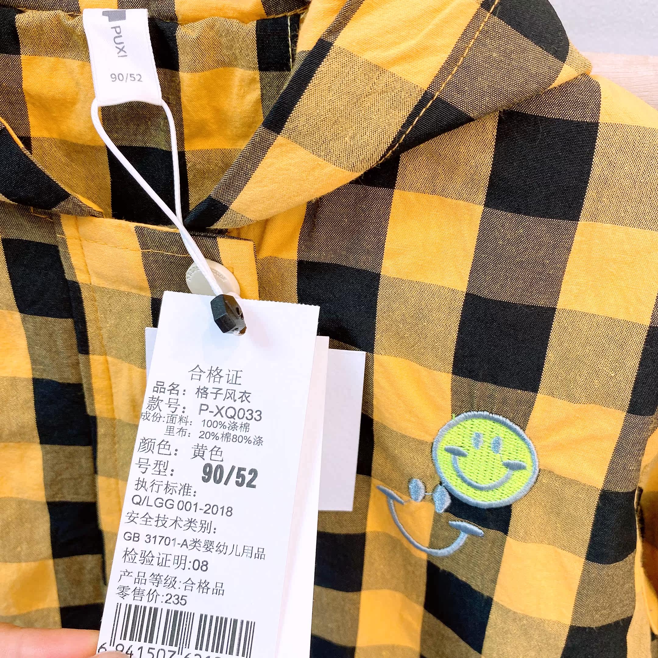Spring and autumn children's Korean style foreign style smiling face long-sleeved plaid shirt hooded jacket 033