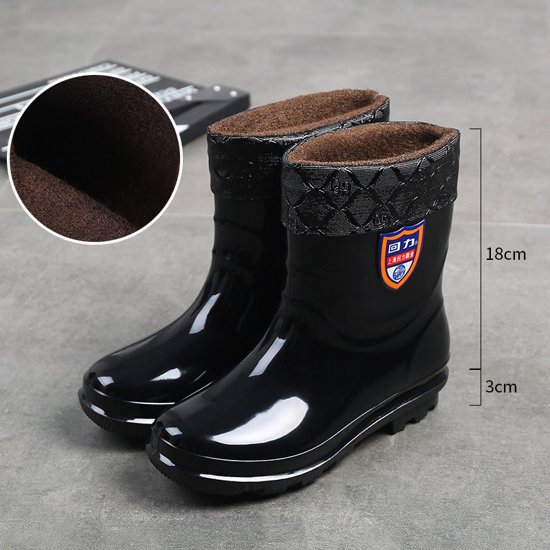 Back Force Rain Shoes Men's Fashion Short Barrel Rain Boots Kitchen Non-slip Waterproof Rubber Shoes Carwash Lao Pau Suede Plus Cotton Water Shoes-Taobao