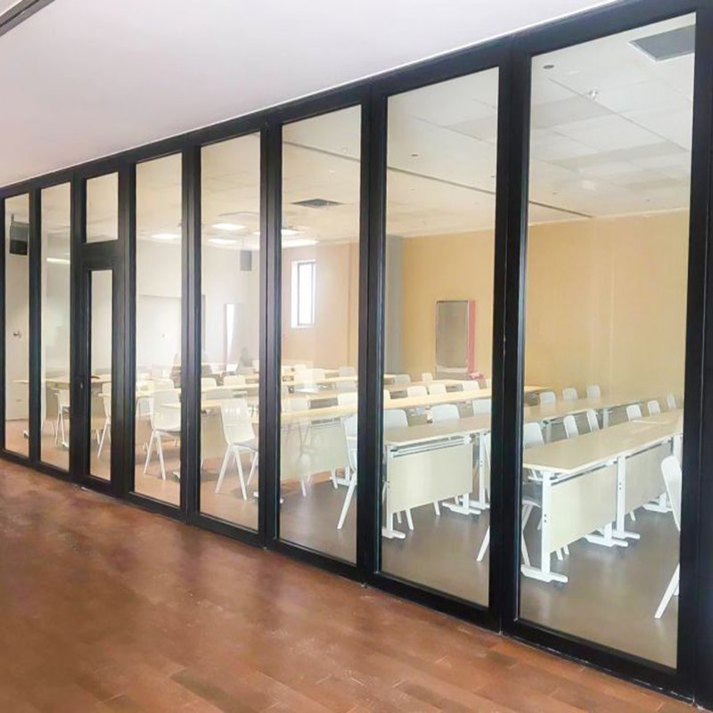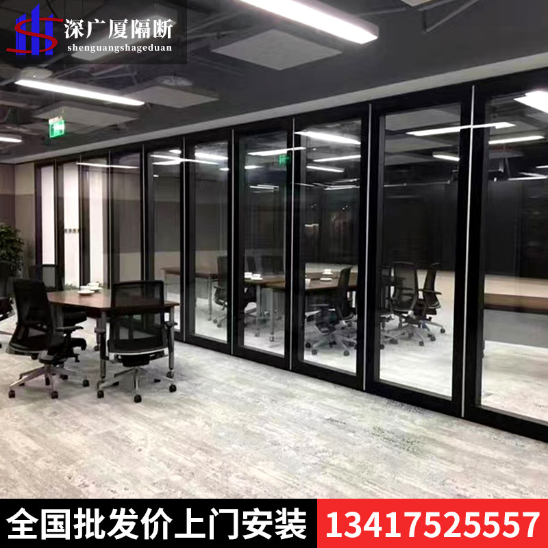 Shenzhen office glass partition folding door shutter hollow tempered glass long iridescent glass mobile partition screen-Taobao