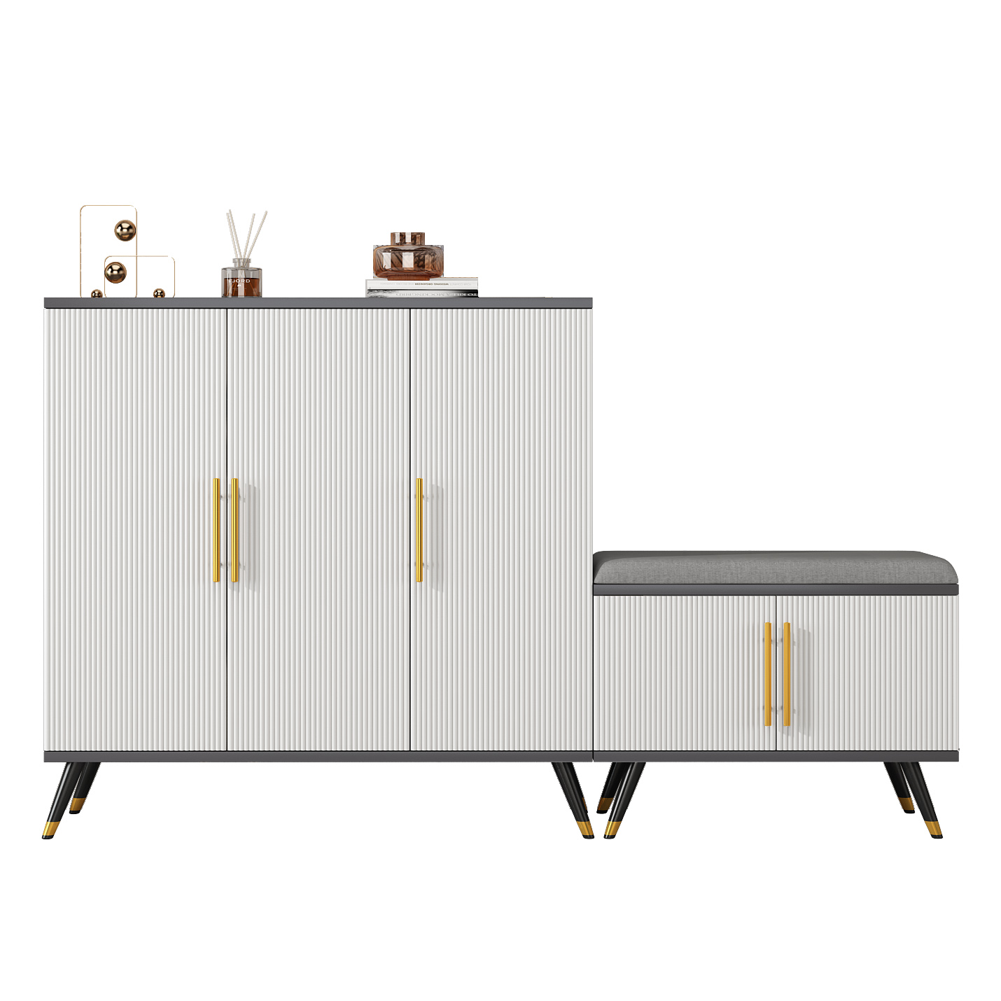 Shoe cabinet door can sit and change shoe stool into the household large-capacity adjustable white shoe cabinet to change shoes and stool all in one - Taobao