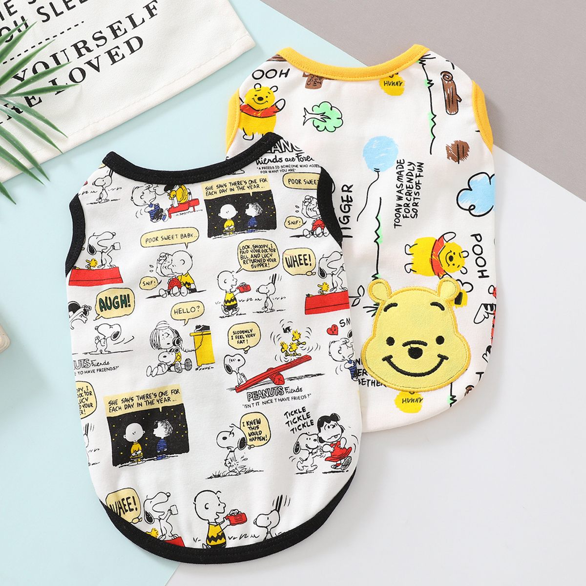 Pet cat dog clothes printed cartoon pet vest cute spring and summer cat Teddy VIP BIG BIG York Shirley