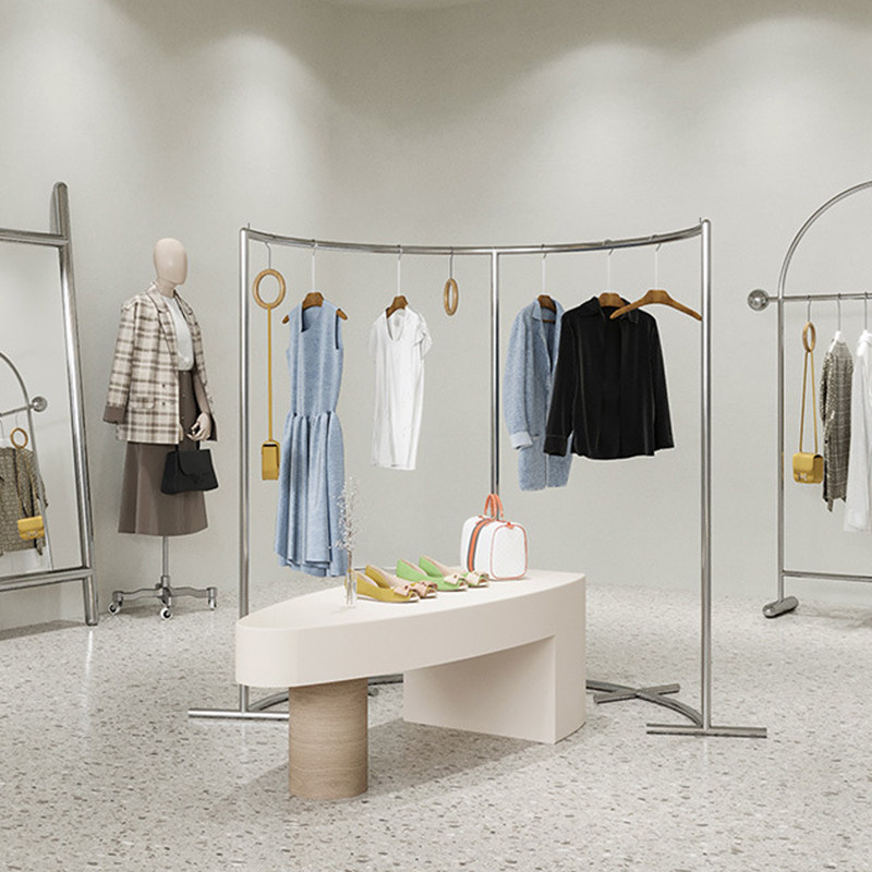 Simple clothing store in the island rack arc floor stainless steel creative women's clothing store semi-circular clothes shelf display rack