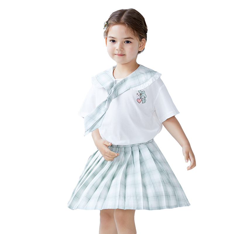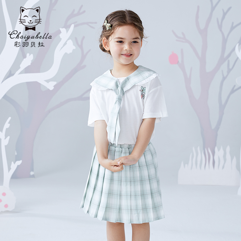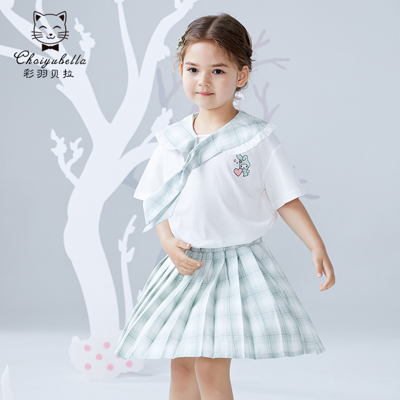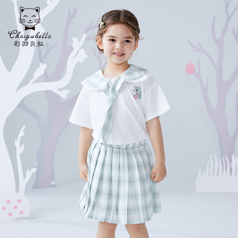 Colour Feather Bella Girl JK Suit Short Dress 2022 Summer New Internet Red Trendy Girl Baby Two Sets