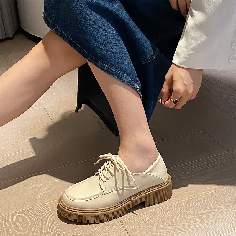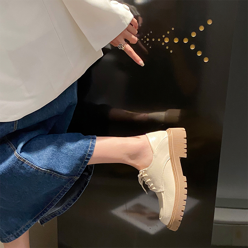 Aeglin white small leather shoes women's summer 2022 new leather soft bottom British college style thick bottom thick heel shoes