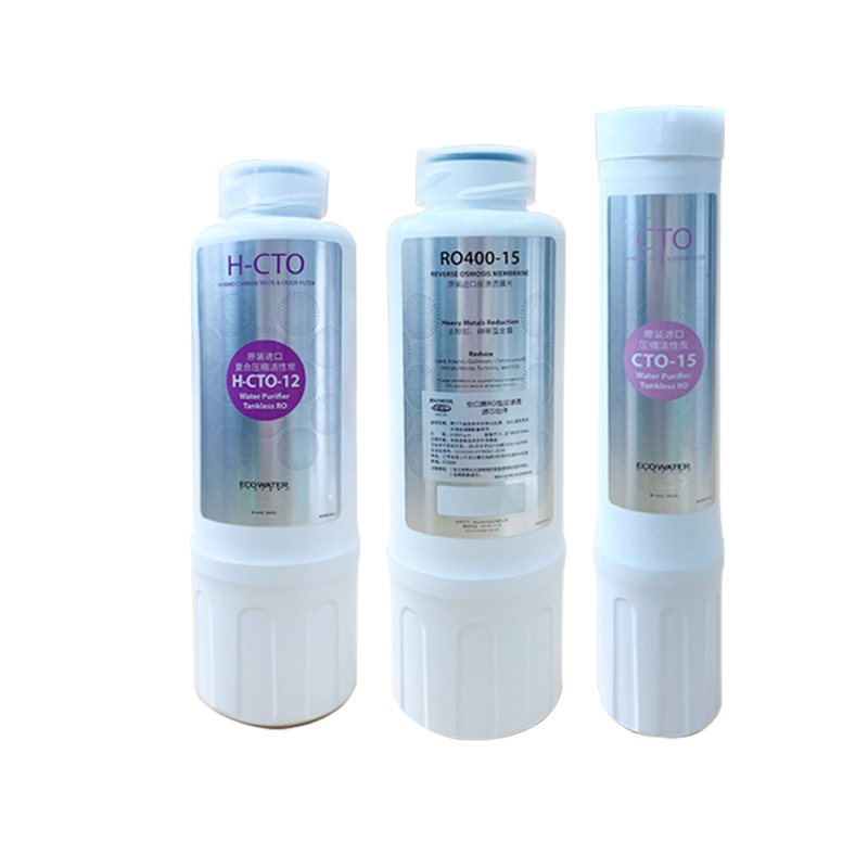 H-CTO-12 Universal first stage filter element 201 Second stage RO reverse osmosis membrane 400GCTO-15 Universal third stage activated carbon filter element H-CTO-12 CTO-