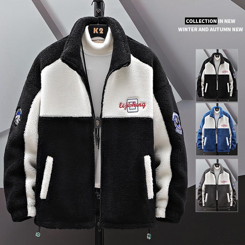 2022 autumn and winter trend large size men's clothing grain fleece jacket fleece fleece thickened warm sheep cake fleece coat cotton coat