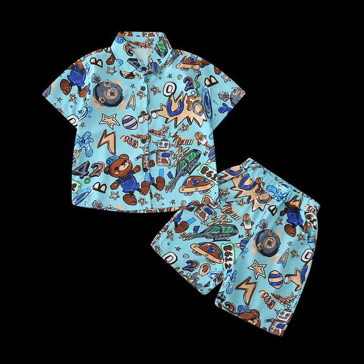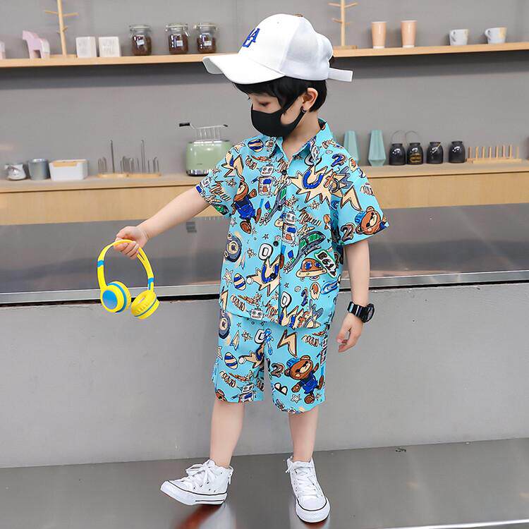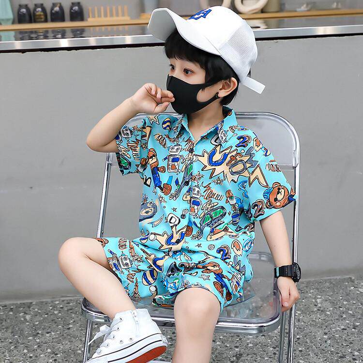 Blend Summer Personality Boy Clothes Summer Cartoon Suit Shorts T-shirt Short Sleeve Kids Clothes Brands Home Clothes