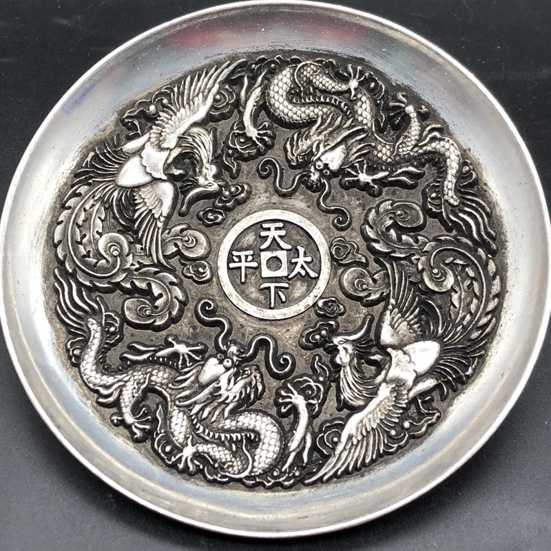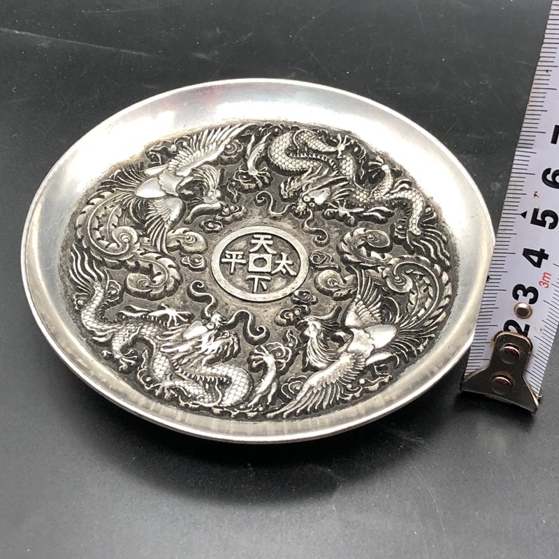 Ancient miscellaneous copper articles Taiping Long Fengyu plate Antique - Rong Royal Give Shuanglong Double Fengyuan Dish Swing parts
